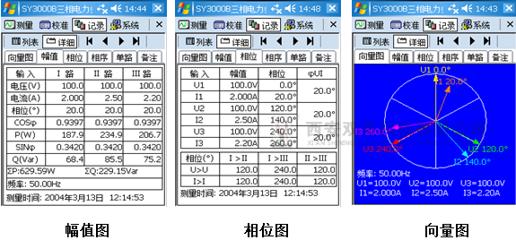 測量范圍:0-500V、0-10A,精度:電壓0.2級,電流0.5級,相位:±1.0°,測相范圍:電流5mA-10A、電壓3V-500V